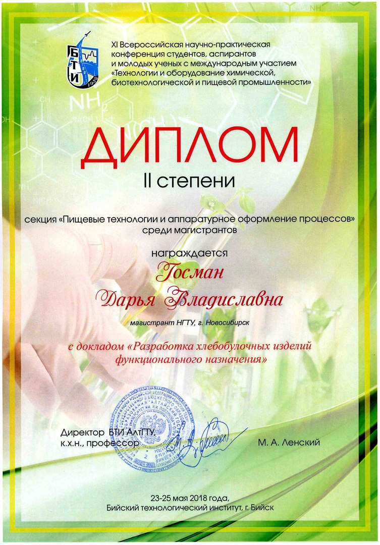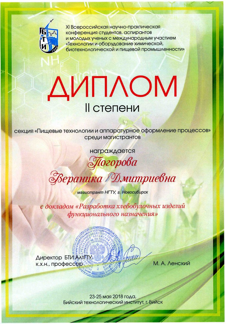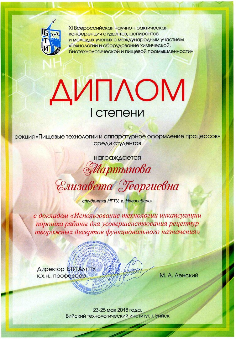Высокую оценку в секции «Пищевые технологии и аппаратурное оформление процессов» получили работы студентов НГТУ, которые были подготовлены под научным руководством доцентов кафедры технологии и организации пищевых производств Ирины Владимировны Мацейчик и Елены Сергеевны Бычковой.
