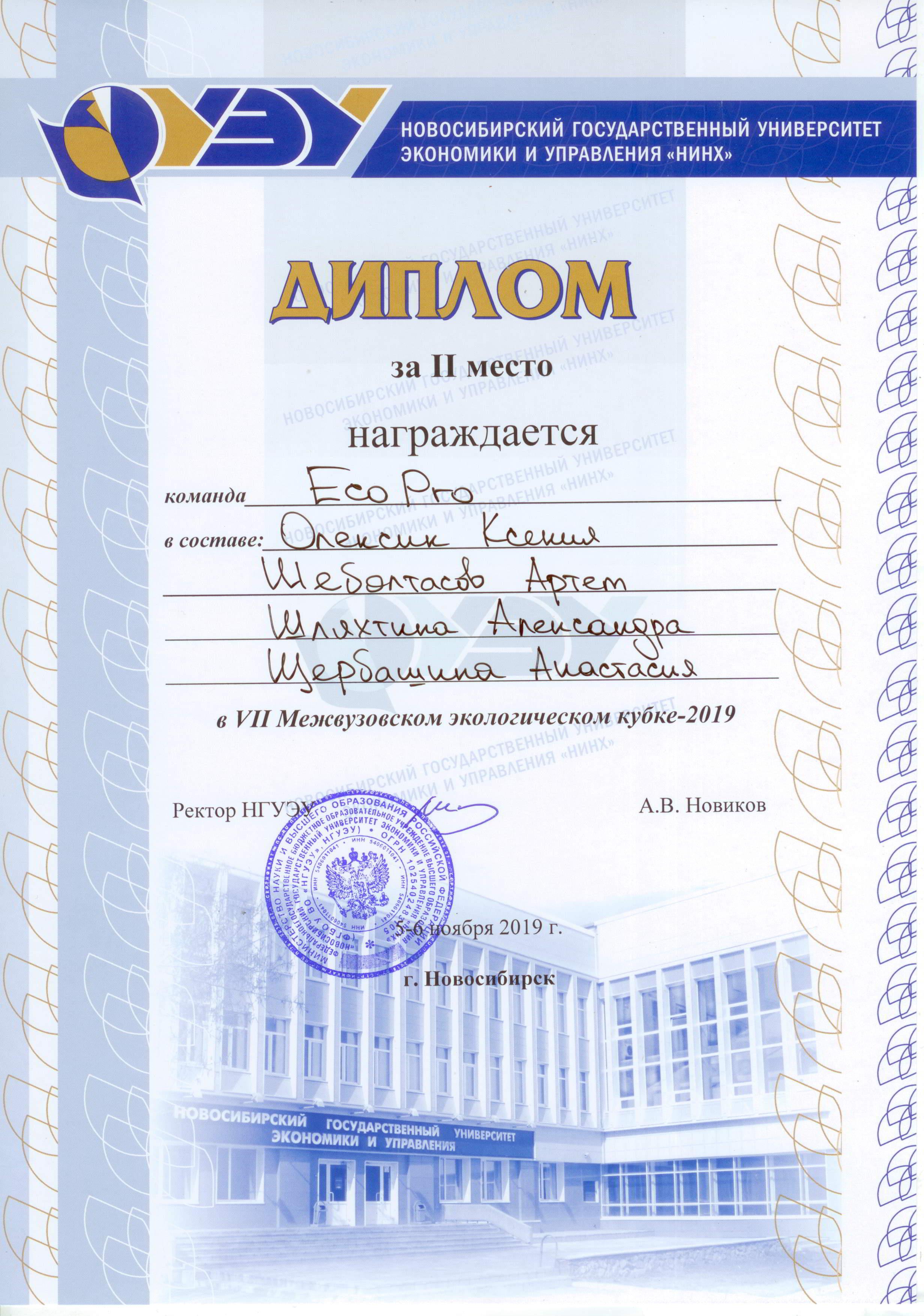 Команда Новосибирского государственного технического университета EcoPro заняла 2 место на VII Межвузовском экологическом кубке—2019.