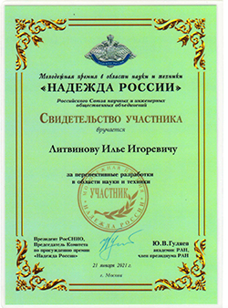 По итогам конкурса Российского Союза научных и инженерных общественных объединений на молодежную премию «Надежда России» в области науки и техники за 2020 год отмечены как перспективные работы двух молодых ученых НГТУ: