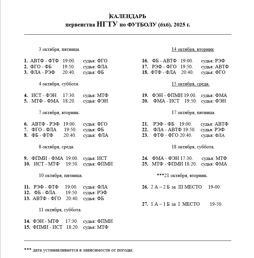 3 октября стартует первенство НГТУ НЭТИ-2025 по футболу (6х6).