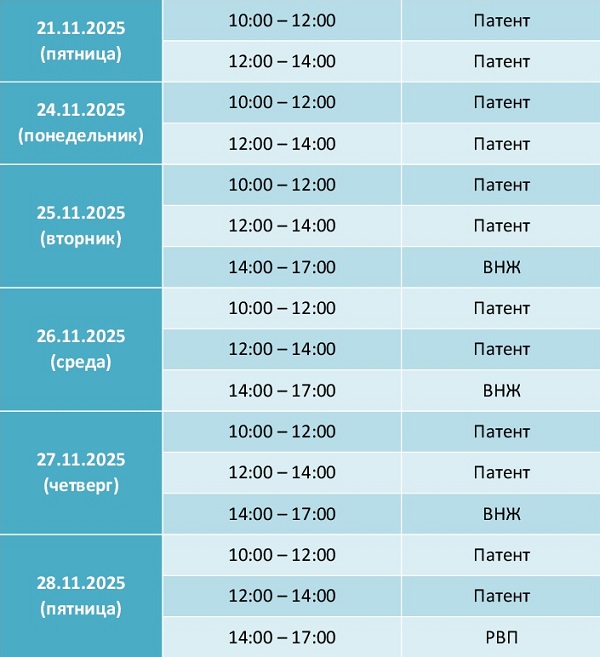 ВНЖ – ВТ, СР, ЧТ (3 сессия); РВП – 28.11 (3 сессия)