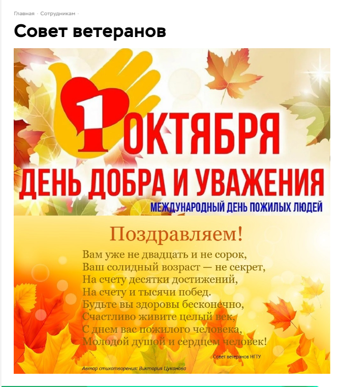 Поздравление от Совета ветеранов с Новым годом на странице совета и на главной странице портала.
