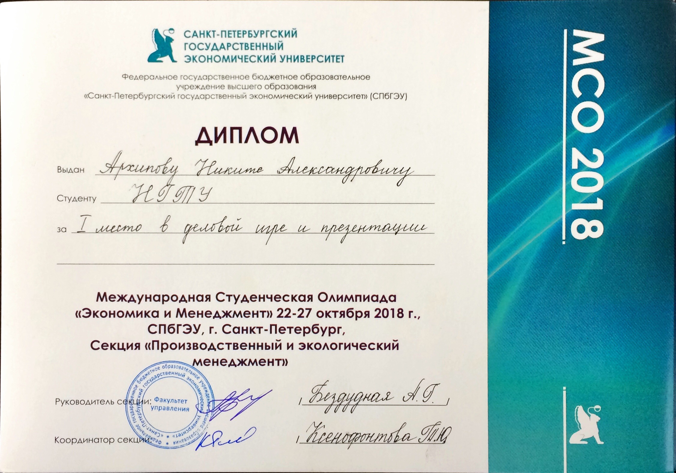 - II место в МСО «Экономика и менеджмент — 2018» среди 16 секций.