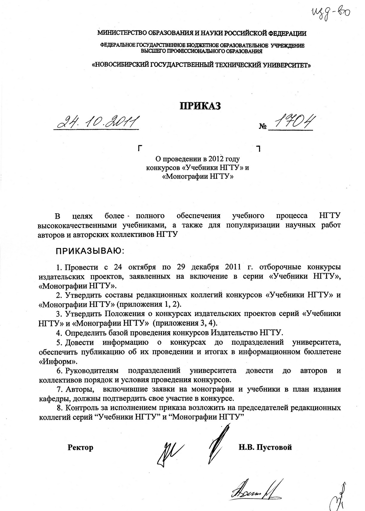 С авторами победивших в конкурсе работ будут заключены договоры на издание в соответствии с п.7 Временного положения о конкурсе издательских проектов серий «Учебники НГТУ», «Монографии НГТУ».