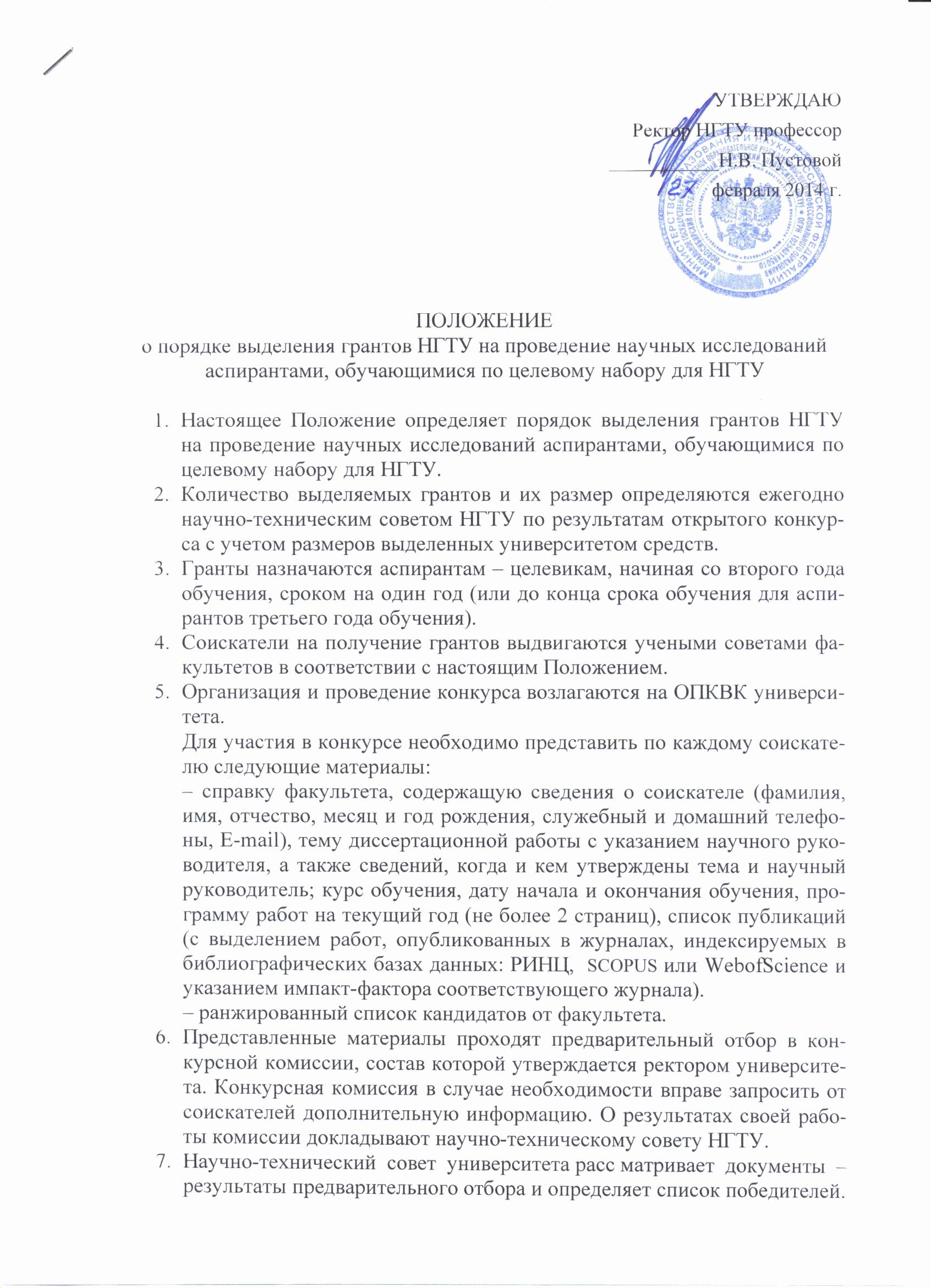 Информация о конкурсе - на портале НГТУ в разделе "Наука и инновации" на странице "Конкурсы, стипендии, гранты".