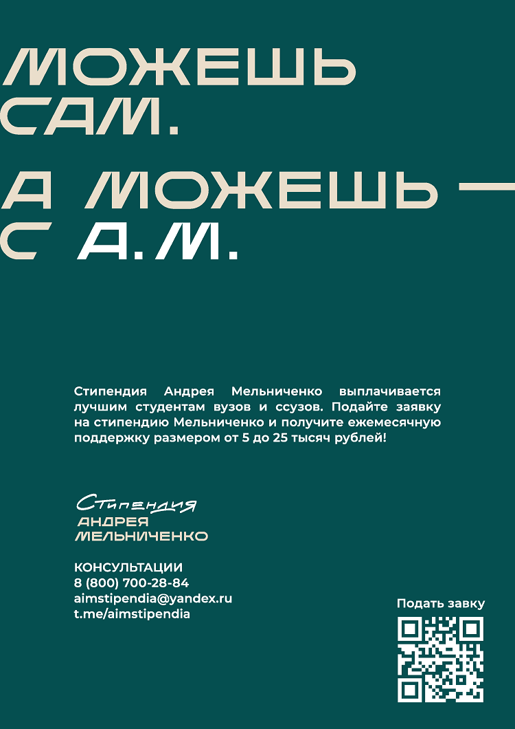Заявки принимаются до 7 марта 2025 г. Все вопросы можно задать по почте aimstipendia@yandex.ru, а также по телефону 8-800-700-28-84