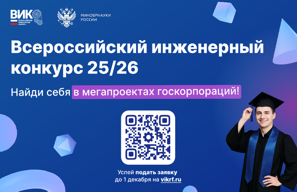 1 октября 2025 года открыт приём заявок на Всероссийский инженерный конкурс, организуемый Минобрнауки России совместно с отраслями-лидерами высокотехнологичной индустрии с 2014 года в соответствии с поручением Президента России.